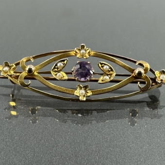 9K Amethyst & Pearl Brooch