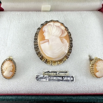 Vermeil Sterling Cameo & Earrings