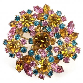 Austrian Crystal Tri-Colour Brooch
