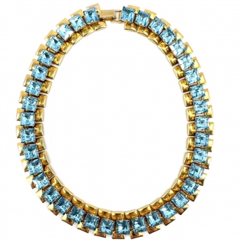 Gold-tone & Blue Glass Choker