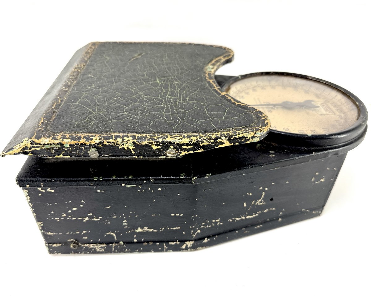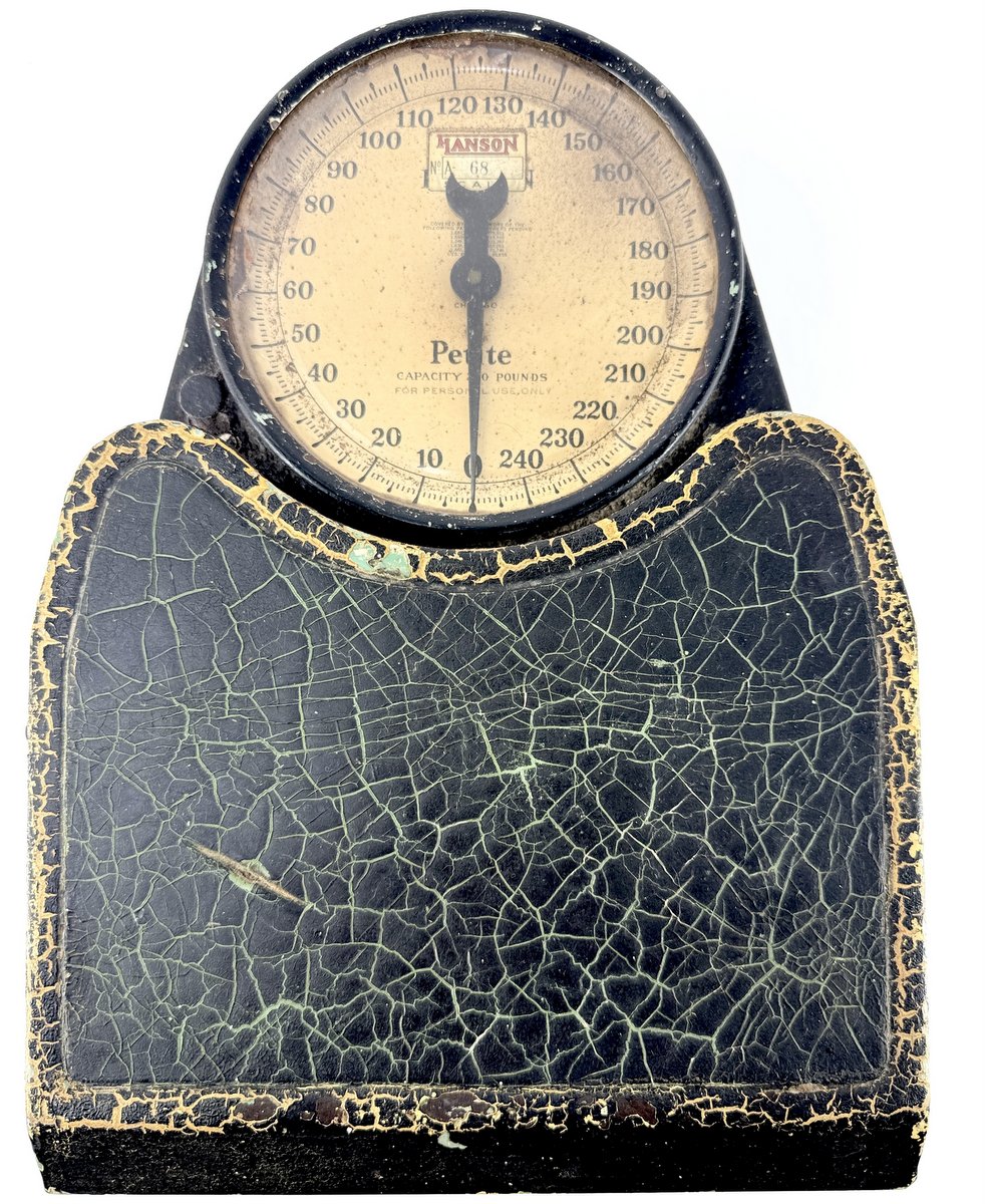 Heavy-duty solid steel construction working bathroom scale. Hanson Petite model with a capacity of 250 pounds. Great old surface.