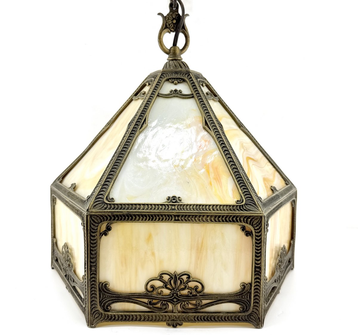 Fine condition medium size caramel slag glass ceiling light from the 1920's era. 12.5" diameter.