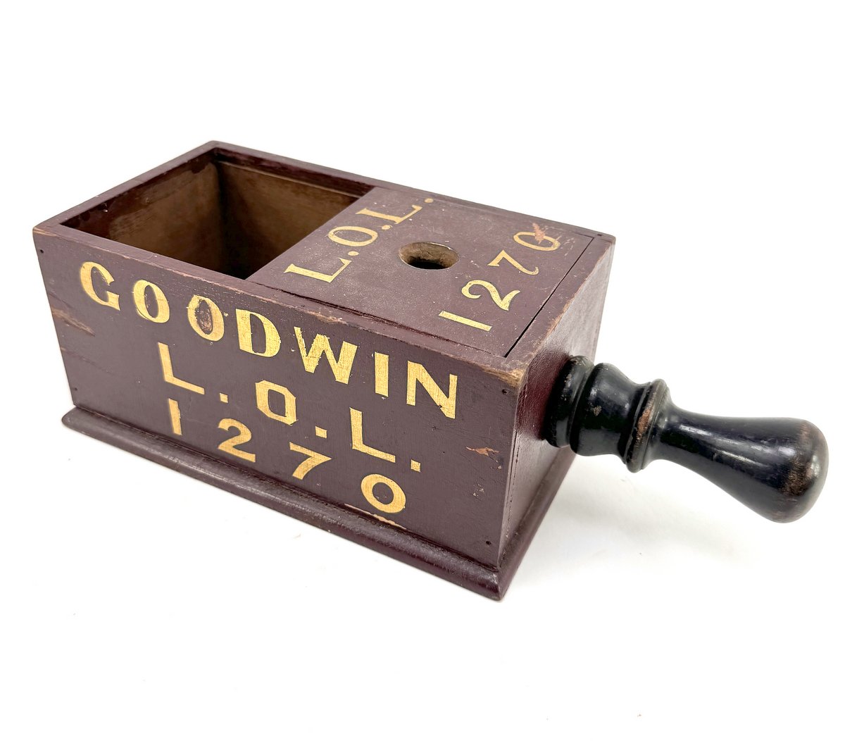 Exceptional 19th or early 20th century painted pine "black ball" voting box for the Goodwin Loyal Orange Lodge 1270. This lodge was located in Truro. A superb example with great original paint.
