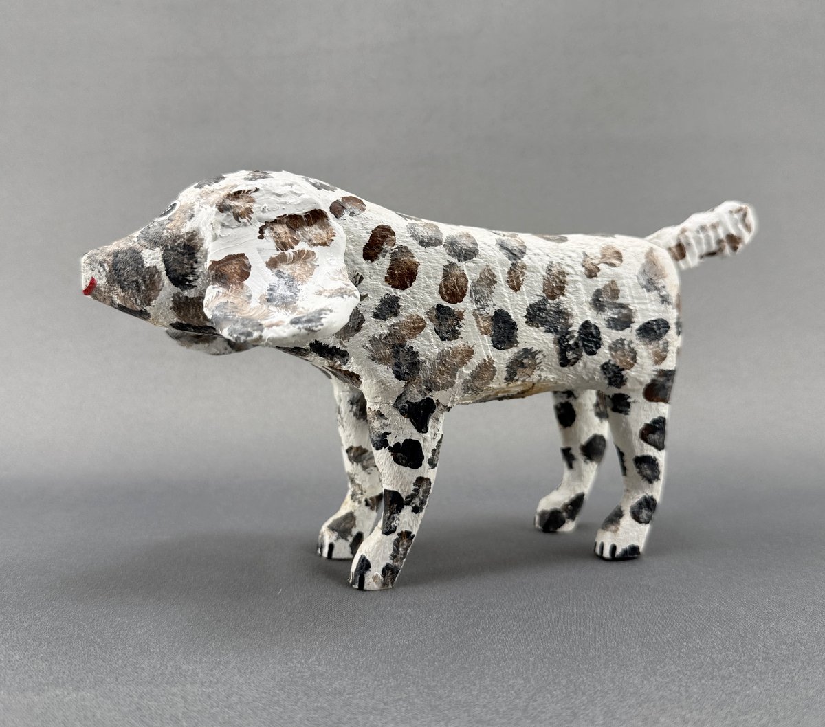 A small Nova Scotia folk art dog by carver Ian Fancey. 9" in length.