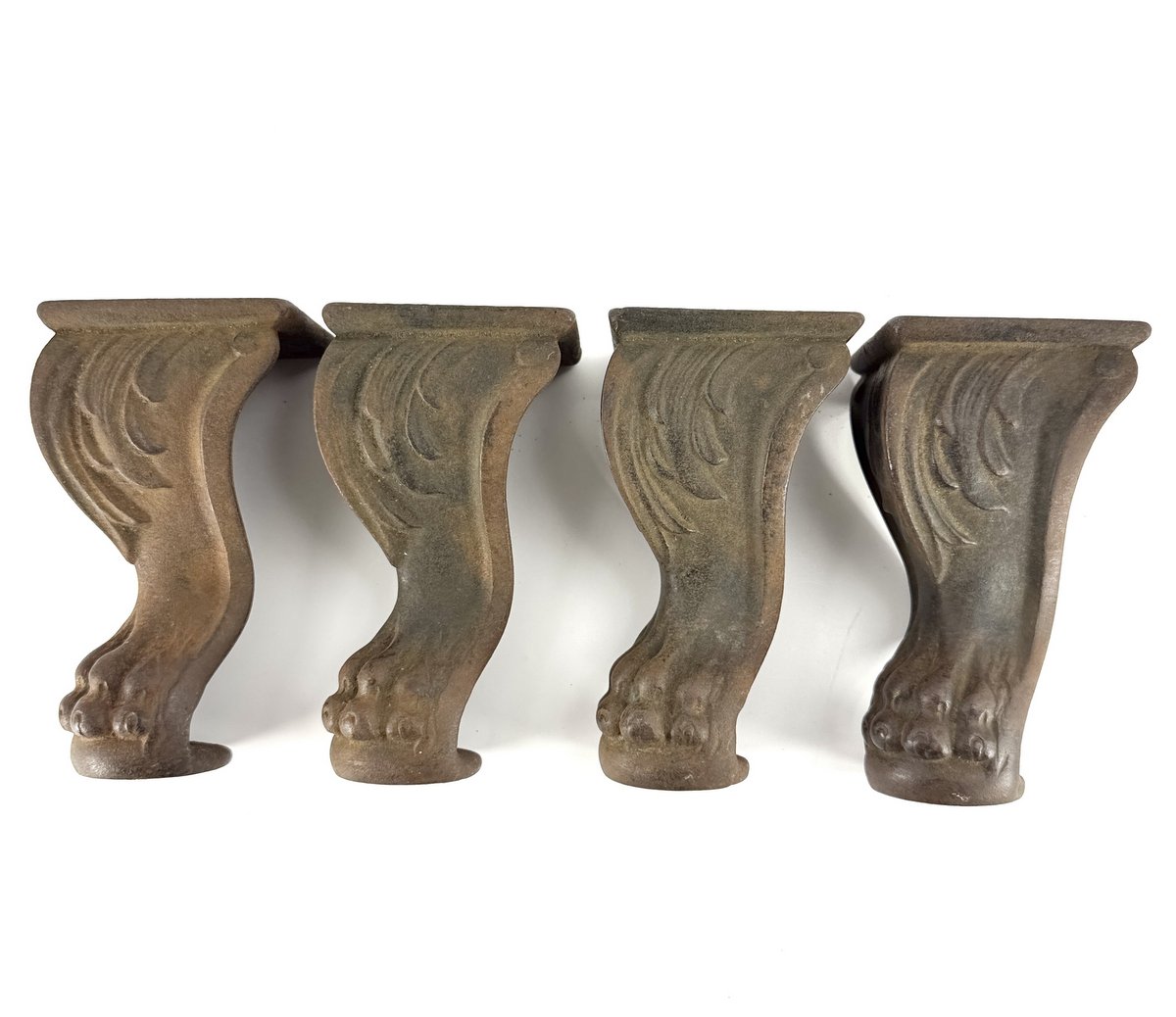 Set of four 19th century cast iron paw feet. 3" x 3" square base plate with four holes for easy mounting. These stand 5.75" in height.