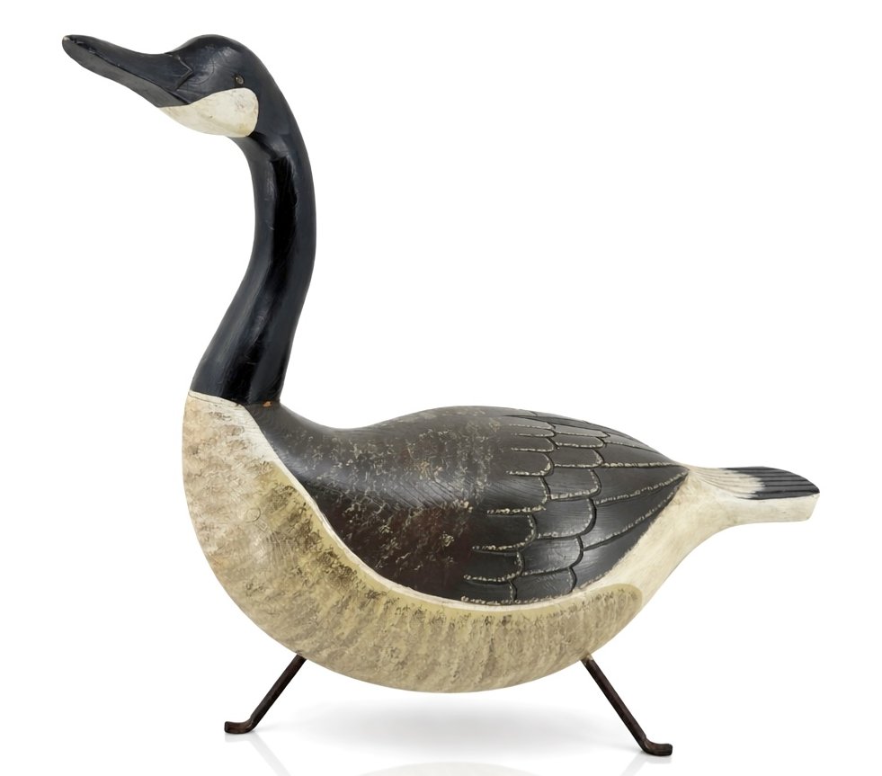Beautifully-carved and painted full-size Prince Edward Island goose decoy. Initials "PC" on underside.