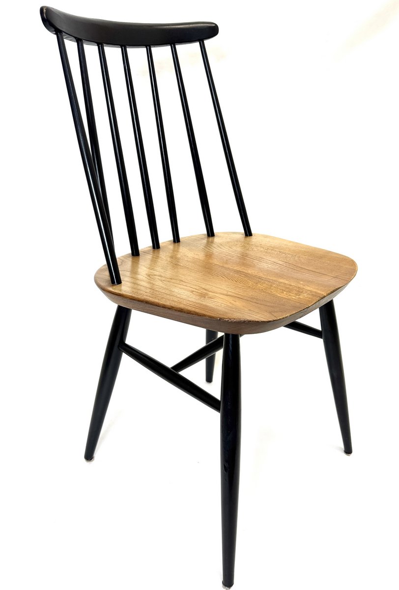 Unmarked 1960s era Scandinavian style rod-back side chair. A solid with a natural-finished oak seat.