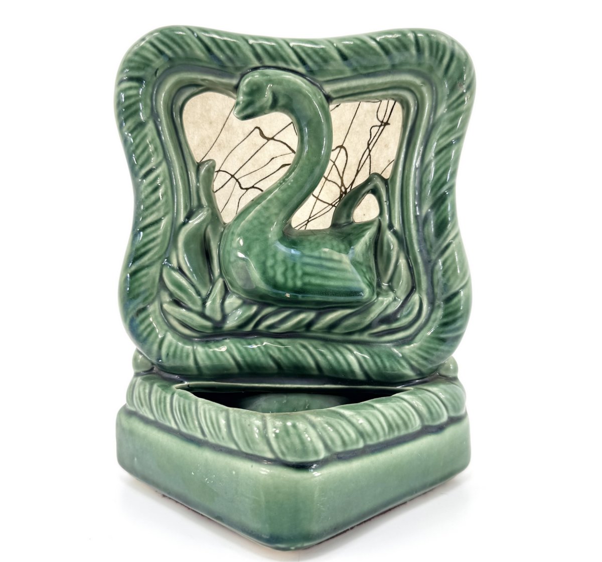 A small, mid-20th century green-glazed ceramic TV lamp in fine condition. Small recessed planter area in front and socket in the back.